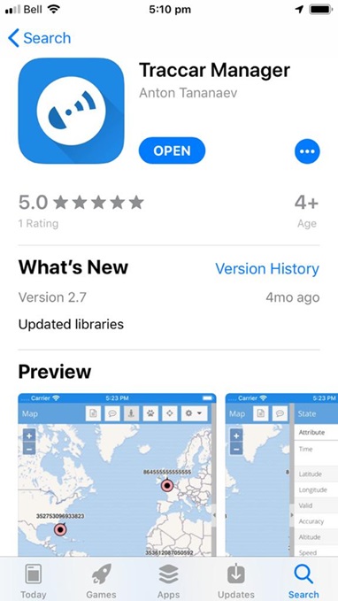 Busque e instale Traccar Manager desde la App Store.