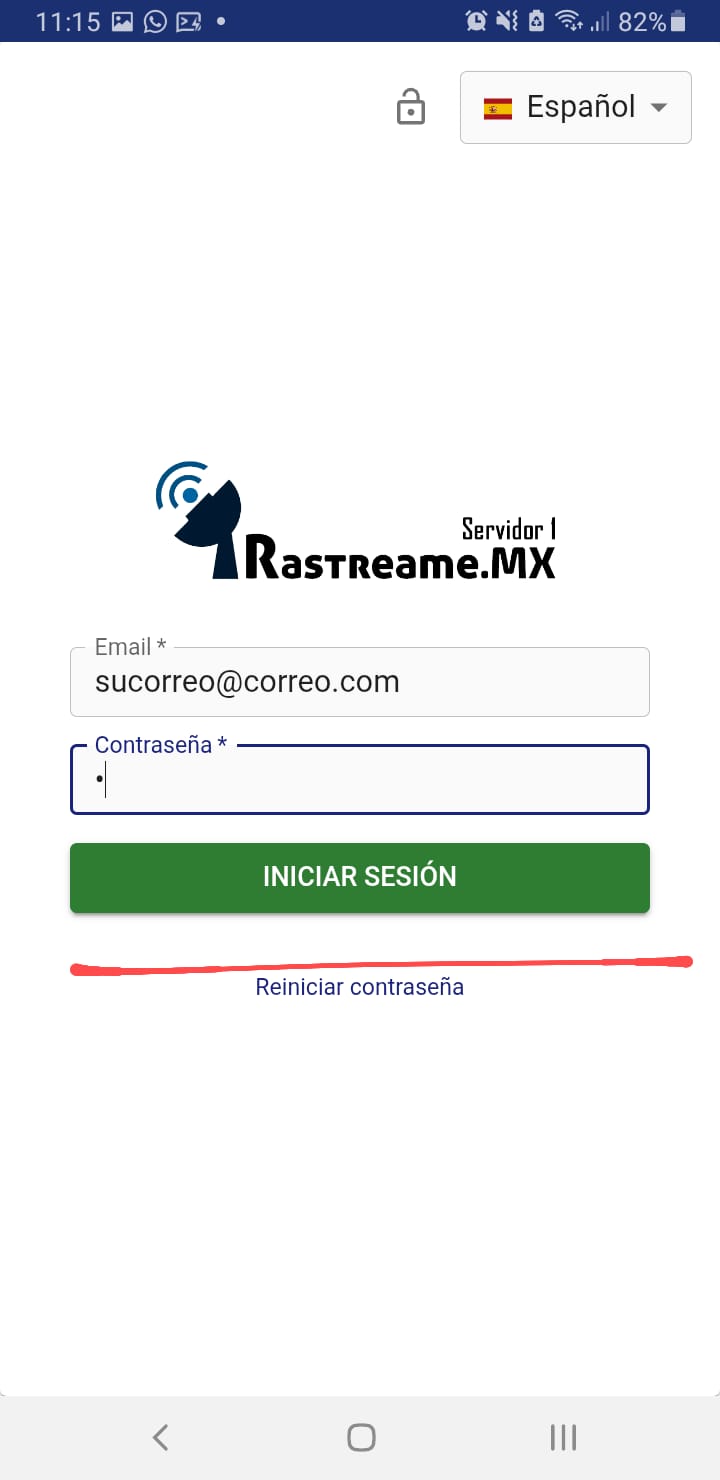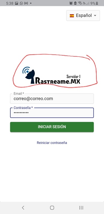 Verifique que aparezca el logotipo "Rastreame MX". Luego ingrese sus credenciales de acceso para finalizar.